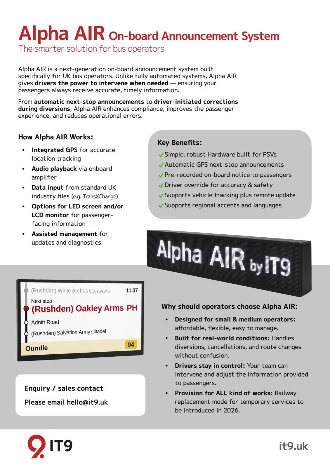 We're now offering early demos and meetings for UK bus and coach operators. Let's discuss how Alpha can support your routes — and hear what features you'd love to see next.