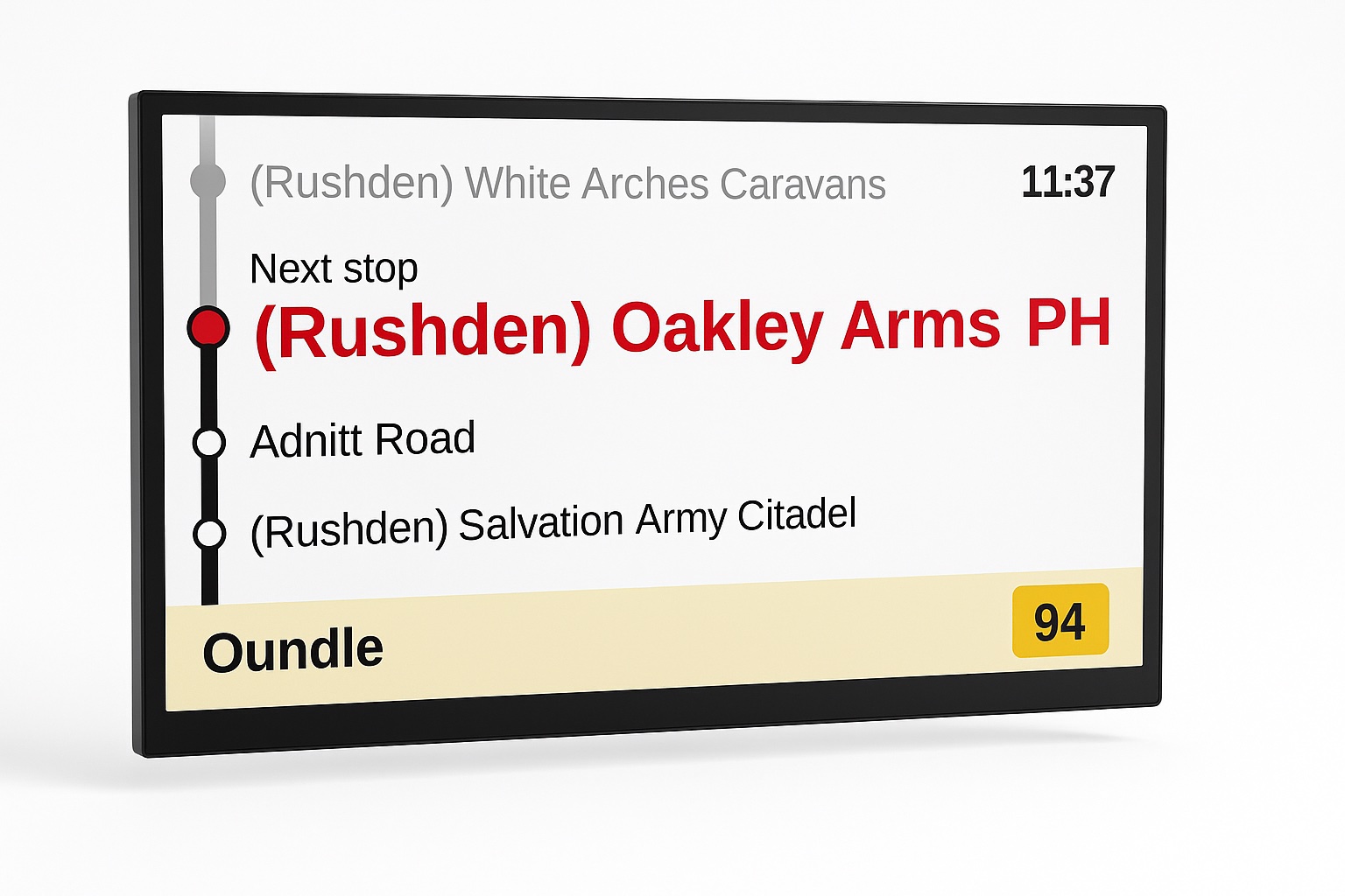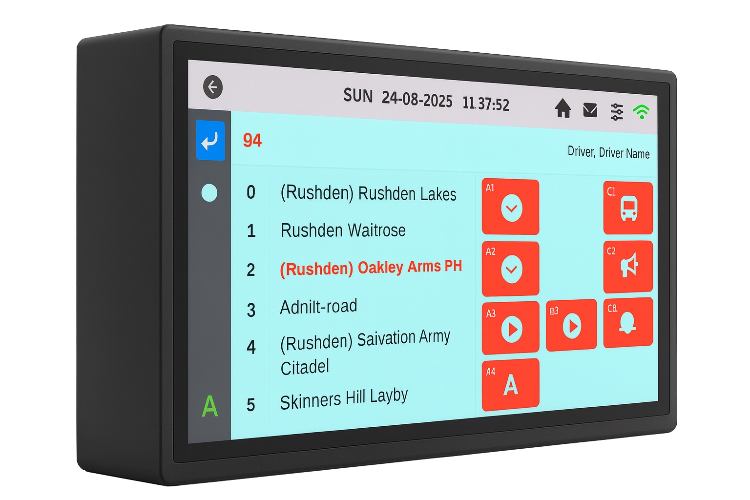 Next-generation on-board announcement system built specifically for UK bus operators. Features integrated GPS, automatic next-stop announcements, driver override capability, and support for regional accents and languages.